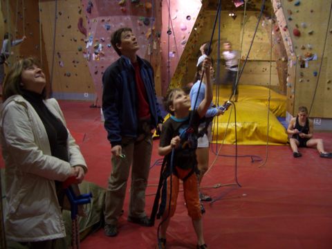 Sur la photo suivante, de gauche à droite: Anne, la maman de Noé, Jean-Didier, prof. d’escalade et Noé. C’est grâce à Anne que Pierre a regrimpé si tôt… Elle nous a sonné le samedi pour voir si Pierre voulait venir dire bonjour… Merci à Jean-Didier d’avoir assuré l’affaire…