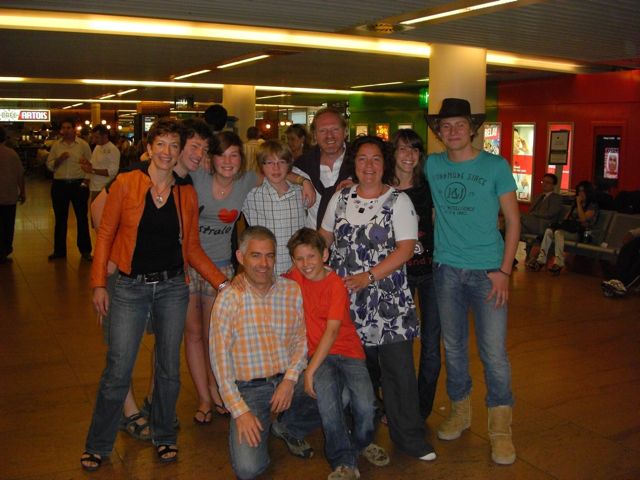 Le retour des Australiens (Robin et Cassandre). Les deux familles réunies au grand complet, à l’aéroport…